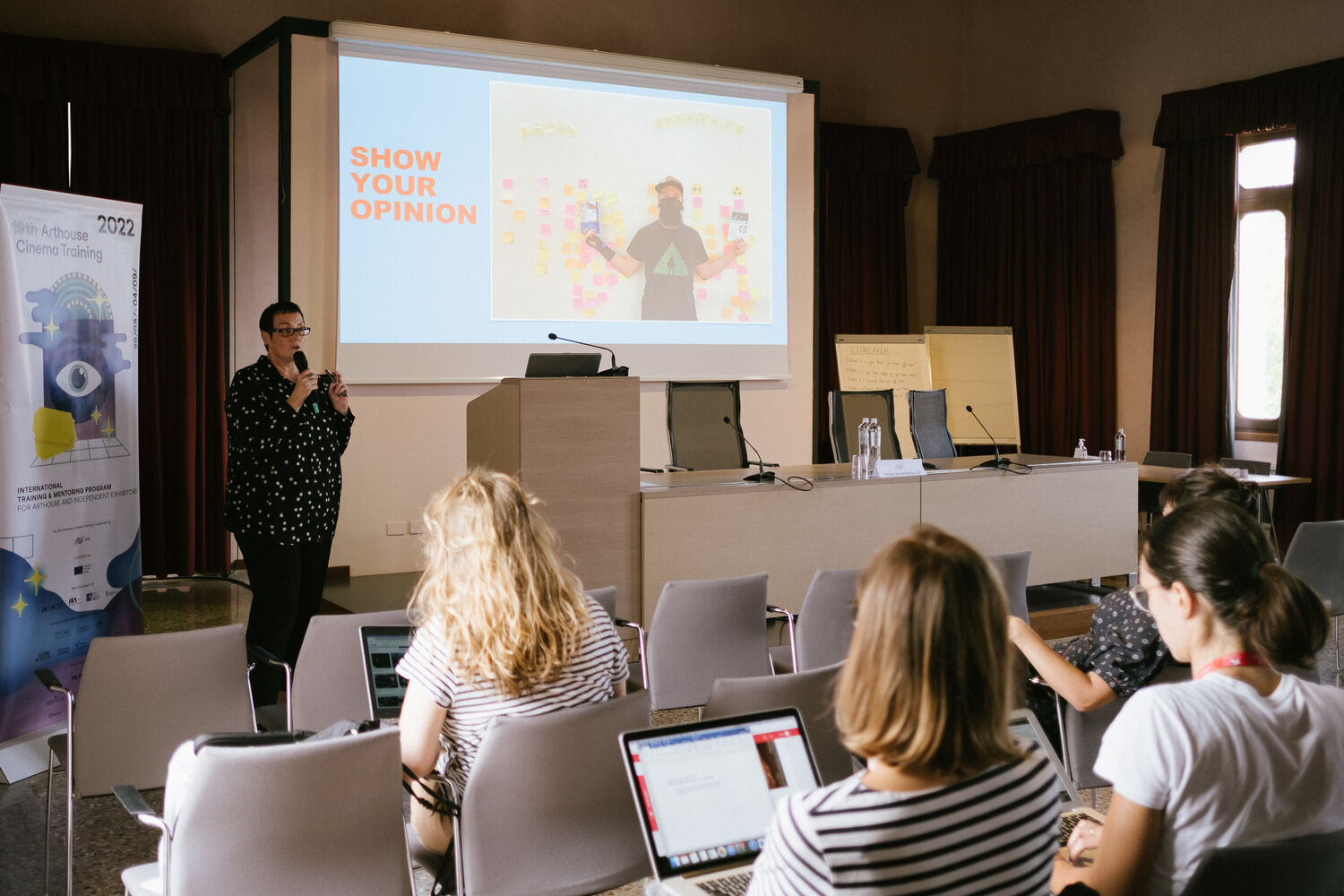 The training has been realised thanks to the support of Creative Europe MEDIA programme, the CNC – Centre national du cinéma et de l’image animée, the FFA - Filmförderungsanstalt and the Direzione Generale del Cinema of the Italian Ministry of Culture. A special thanks also go to San Servolo Servizi, the long-time partner of the training, the national arthouse cinema associations AFCAE, AG Kino and FICE, as well as MUBI, joining the ranks of sponsors in recent years.